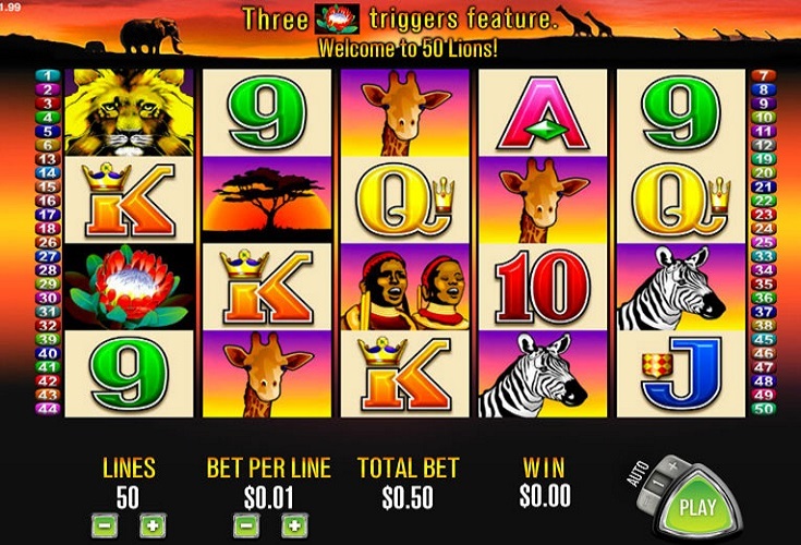 Der Spielautomat 50 Lions kostenlos spielen oder mit Echtgeld im Casino, entführt den Gamer in die Welt der afrikanischen Wildtiere.